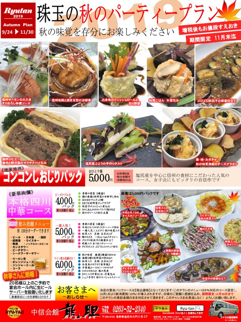 秋のパーティプラン(ご宴会はRyu-tanで)【龍胆】